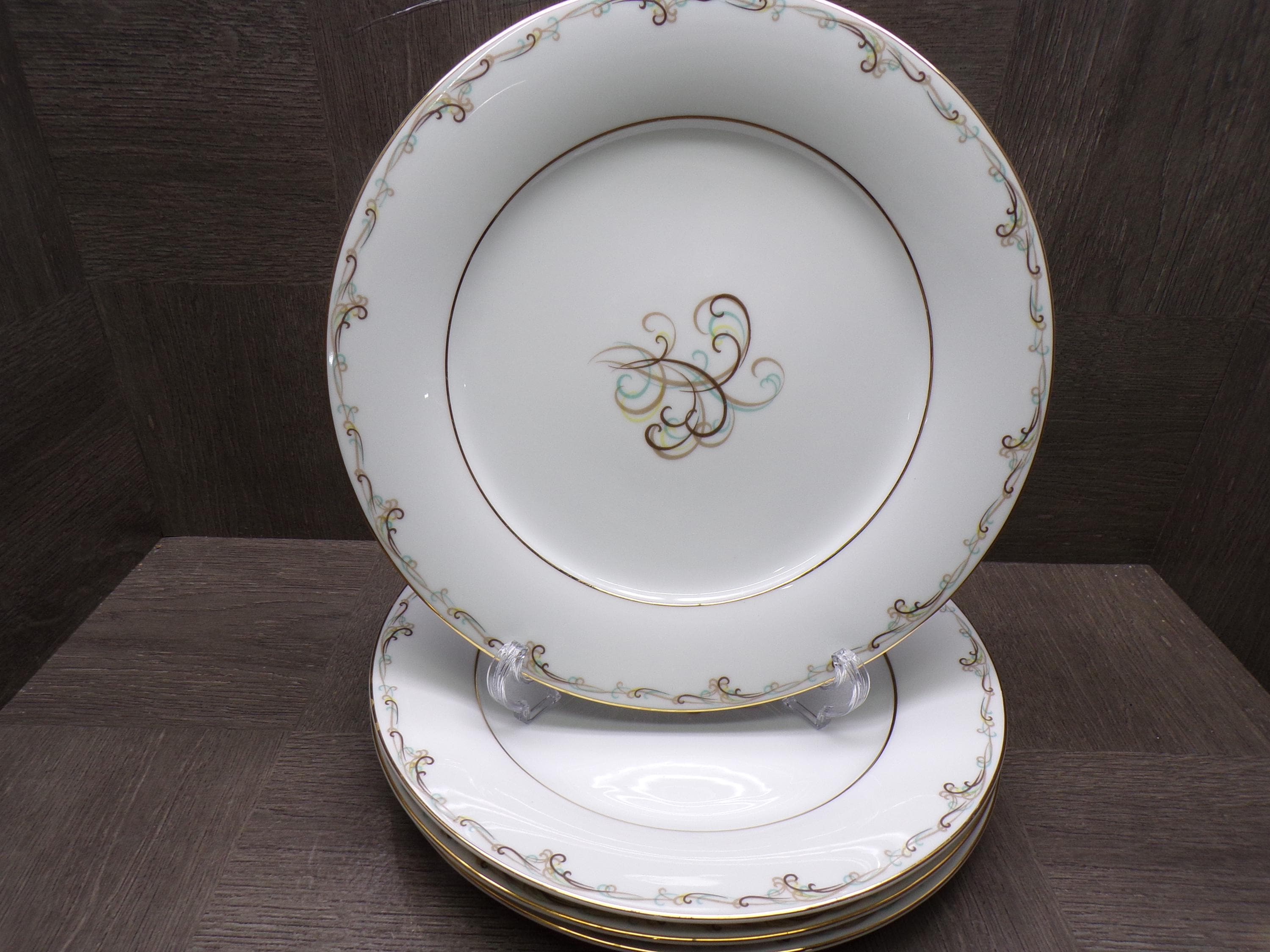 2603 Noritake Esteem Esquire #5404 Fine China 10.25" Dinner Plates Set of 4 Vintage 1953 to 1960 Japan - Great Condition