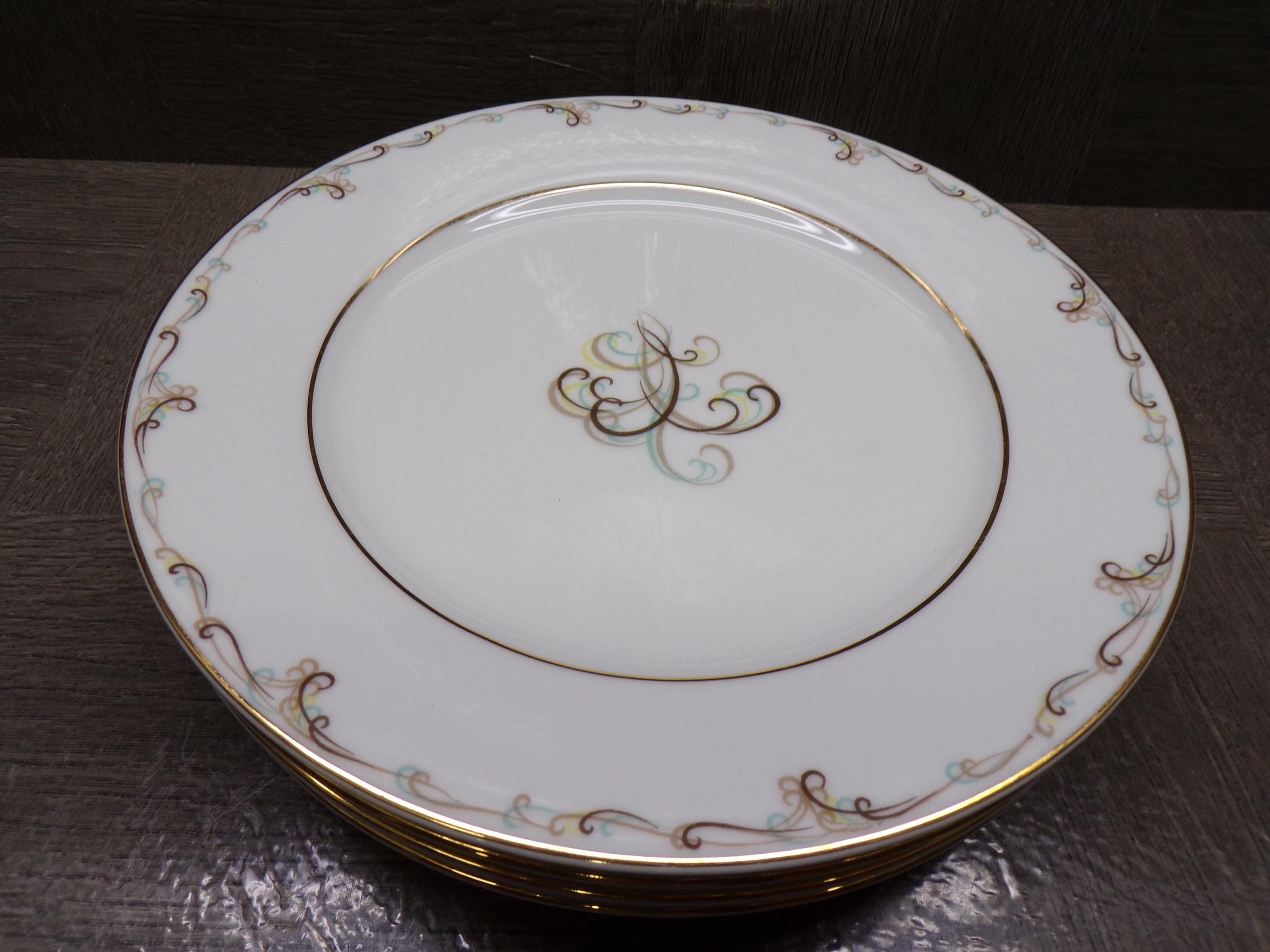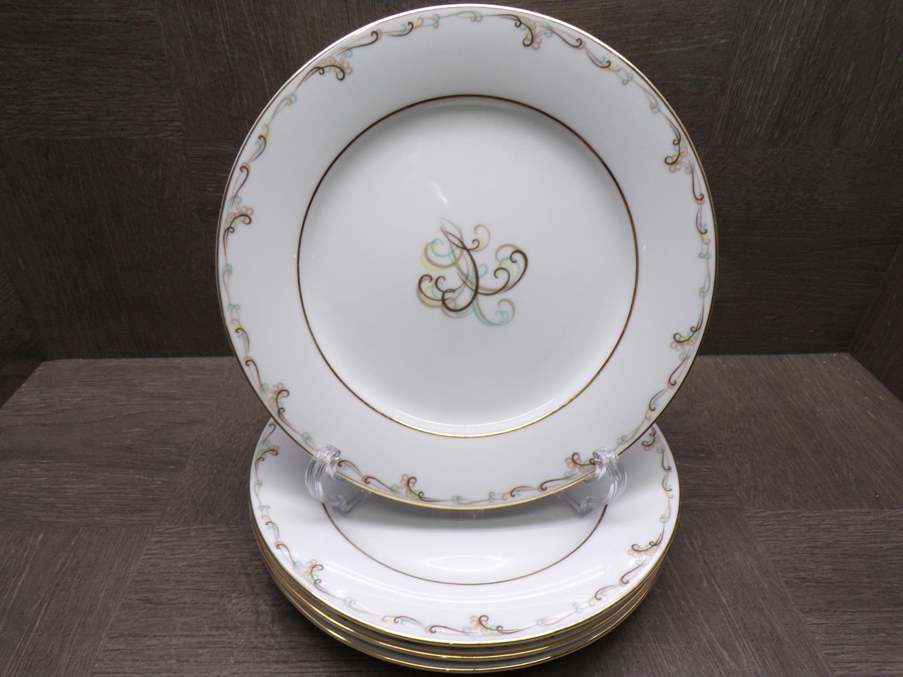 2603 Noritake Esteem Esquire #5404 Fine China 8.25" Salad / Snack Plates Set of 4 Vintage 1953 to 1960 Japan - Great Conditio