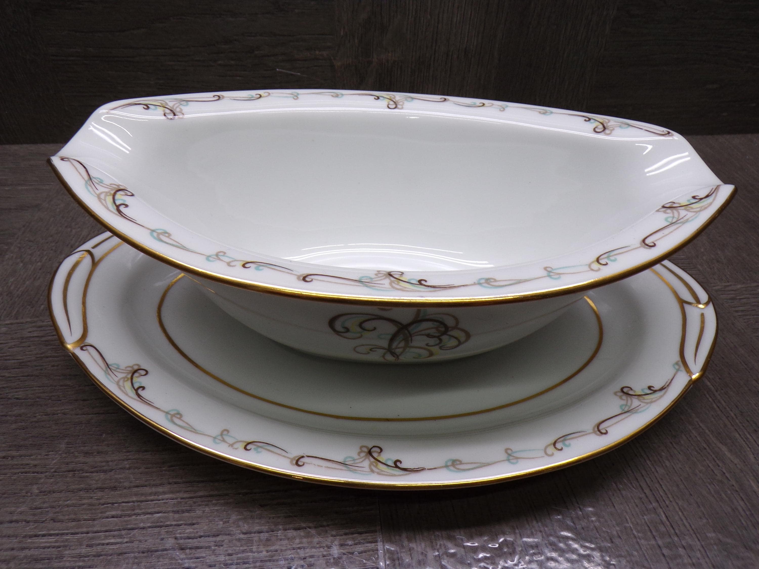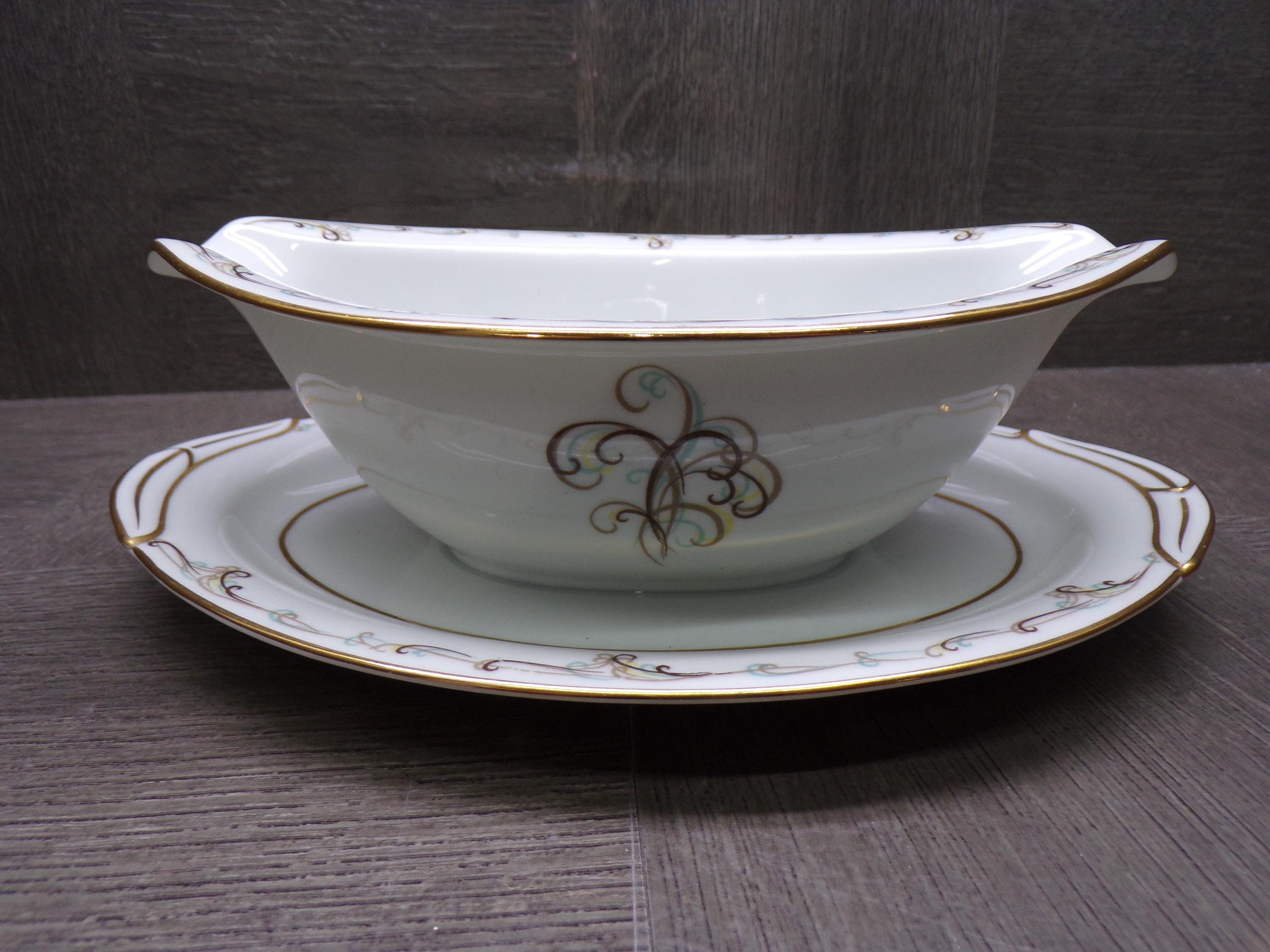 2603 Noritake Esteem Esquire #5404 Fine China Gravy Boat w/ Attached Underplate Vintage 1953 to 1960 Japan - Great Condition