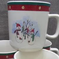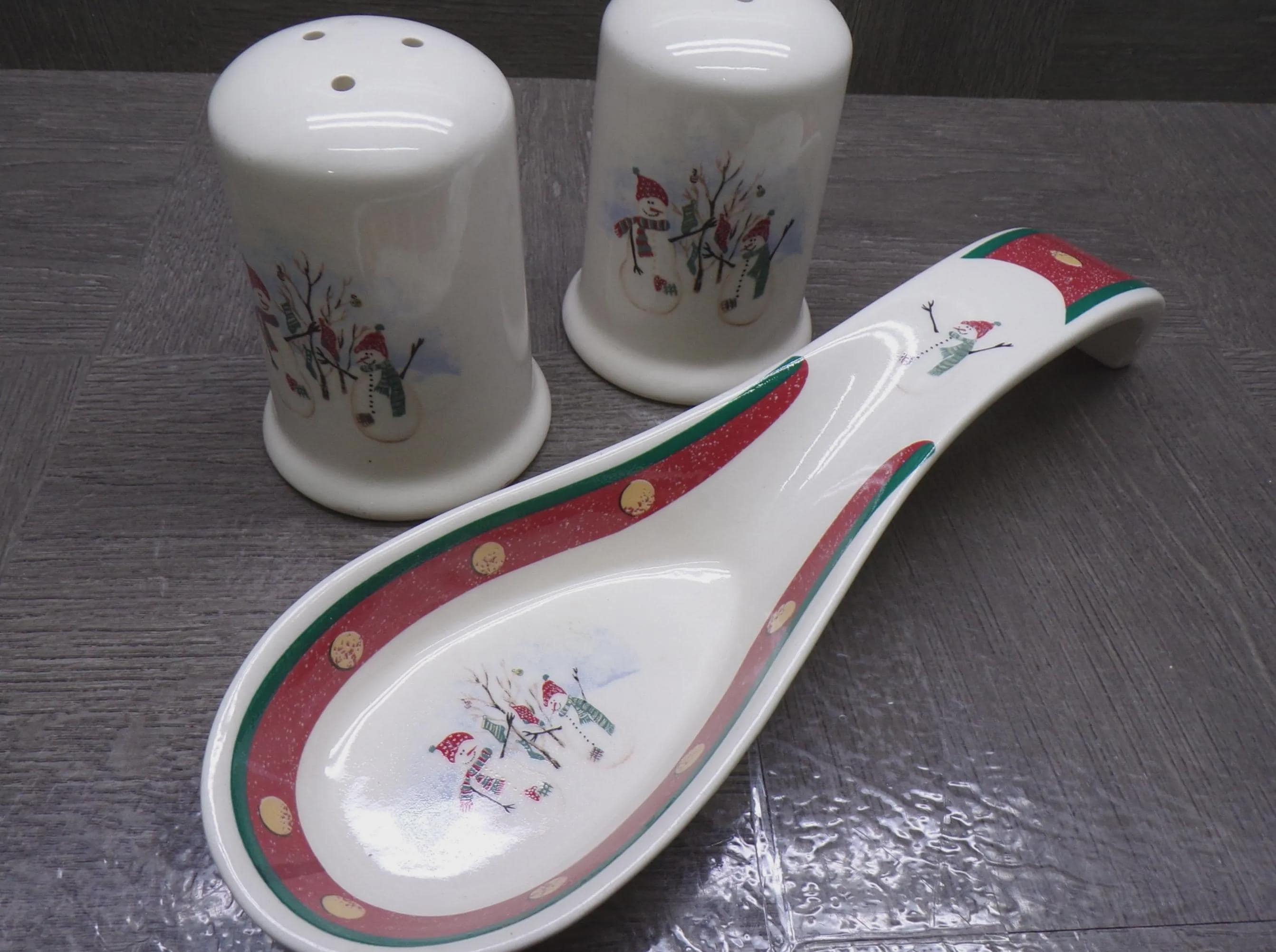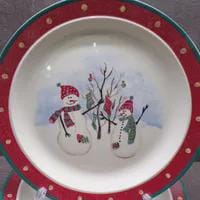 2603 Royal Seasons Vintage Stoneware Snowman Snowflake Christmas Dinnerware - Great Condition