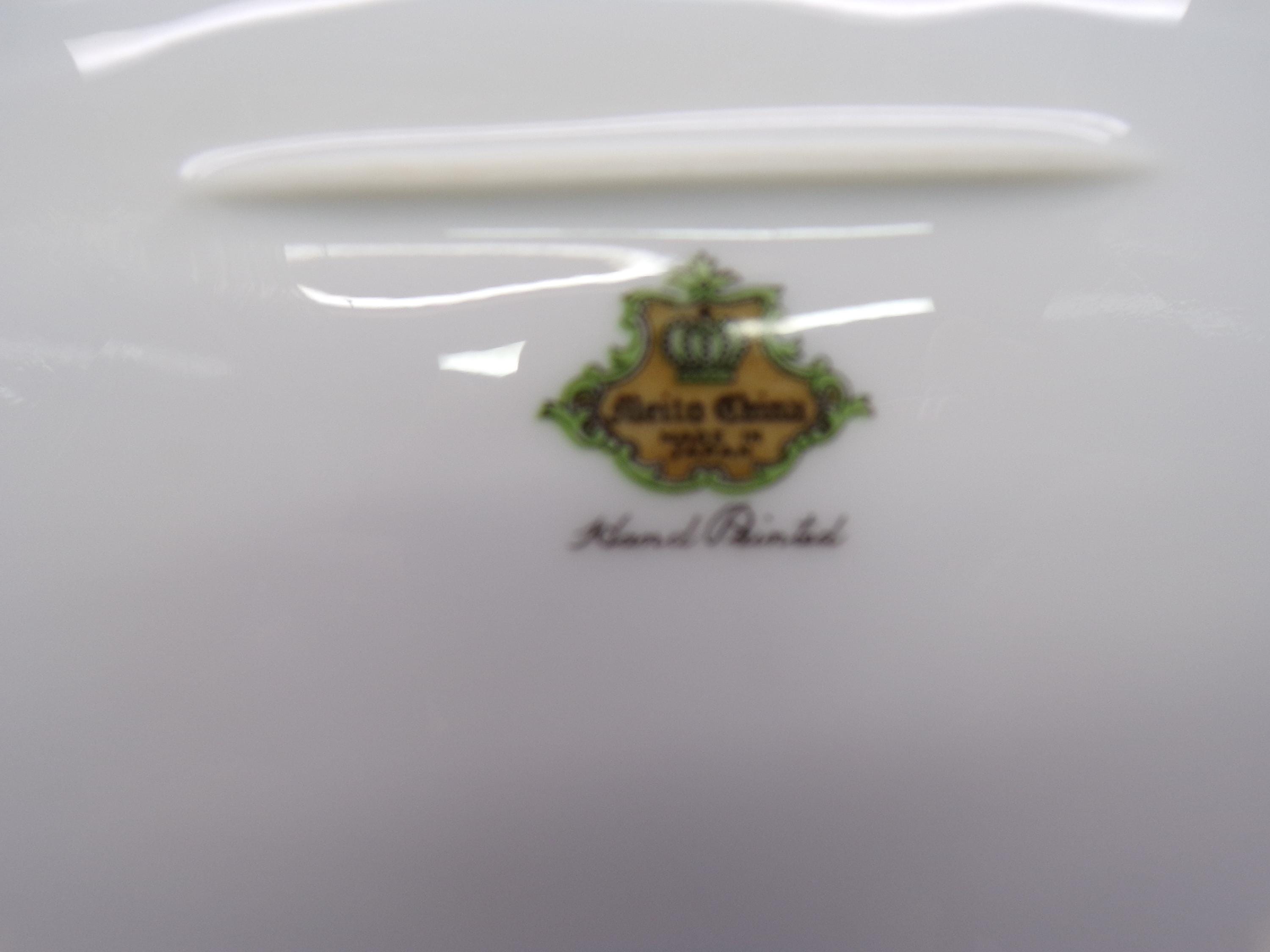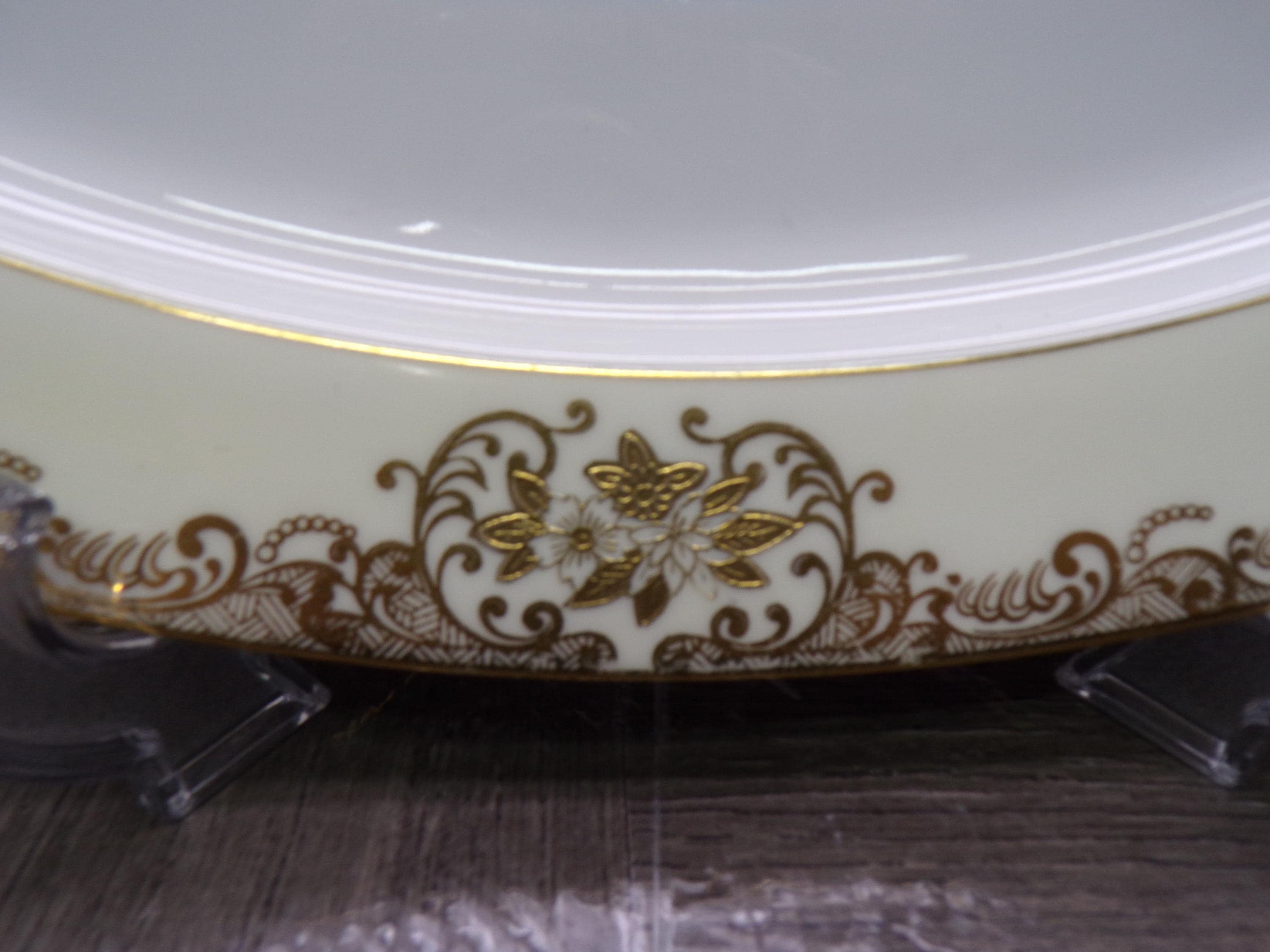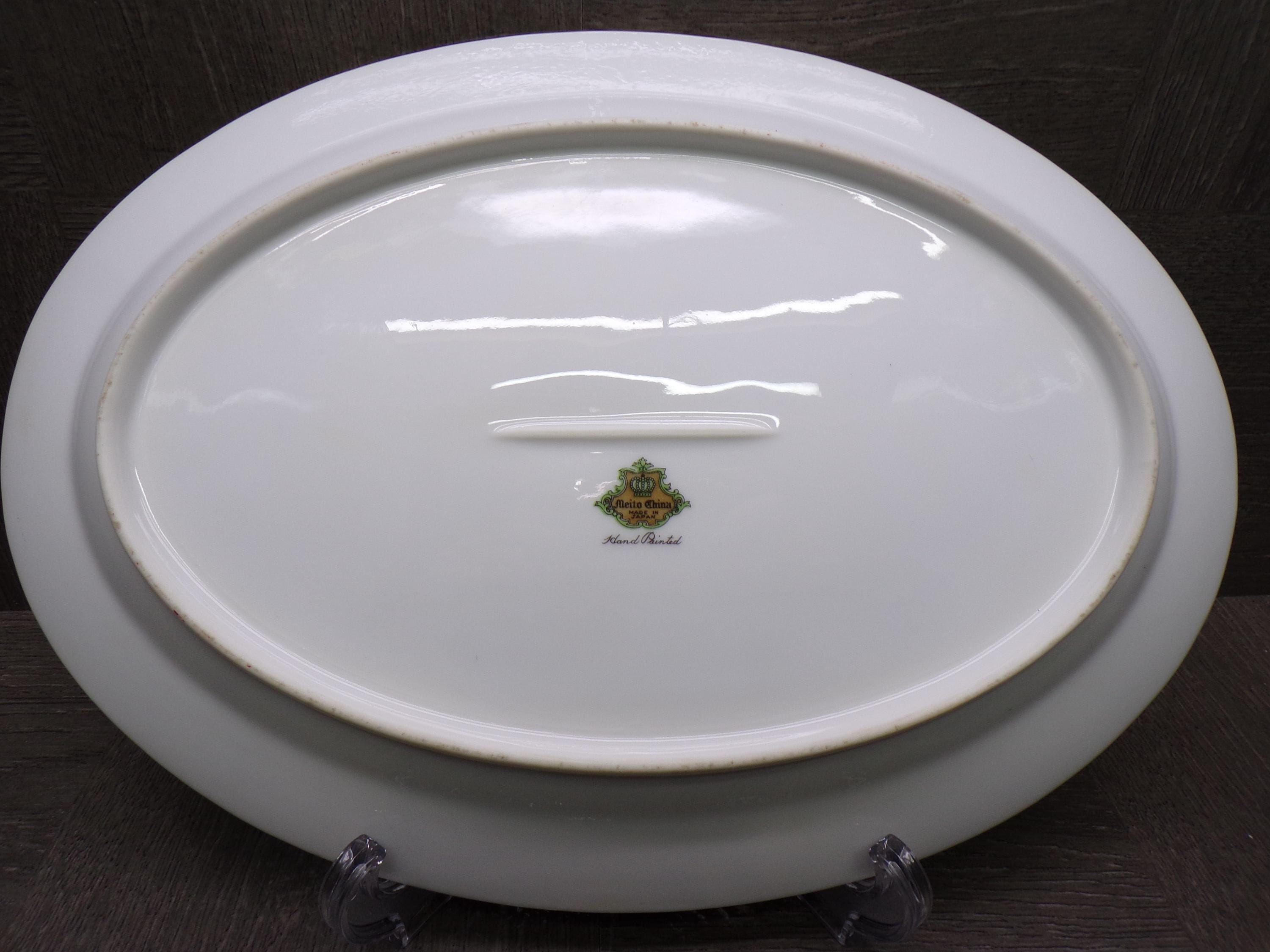 2603 Meito Vintage 1936 Hand-painted China 12.25" x 8.75" Oval Platter White Center 22 kt Gold Flowers & Scrolls w/ Cream Rim Made in Japan - Great Condition Little Wear