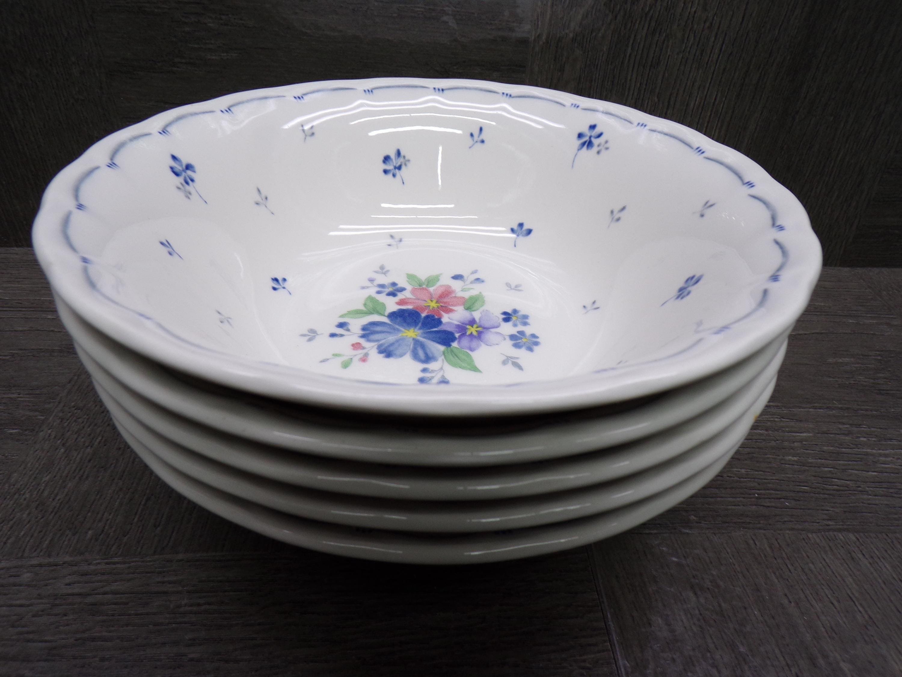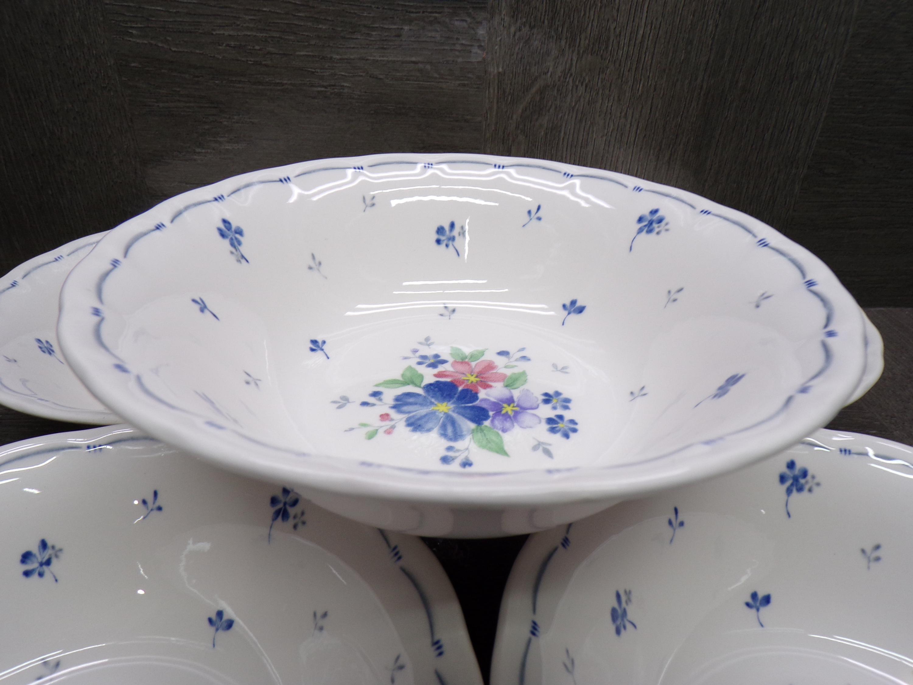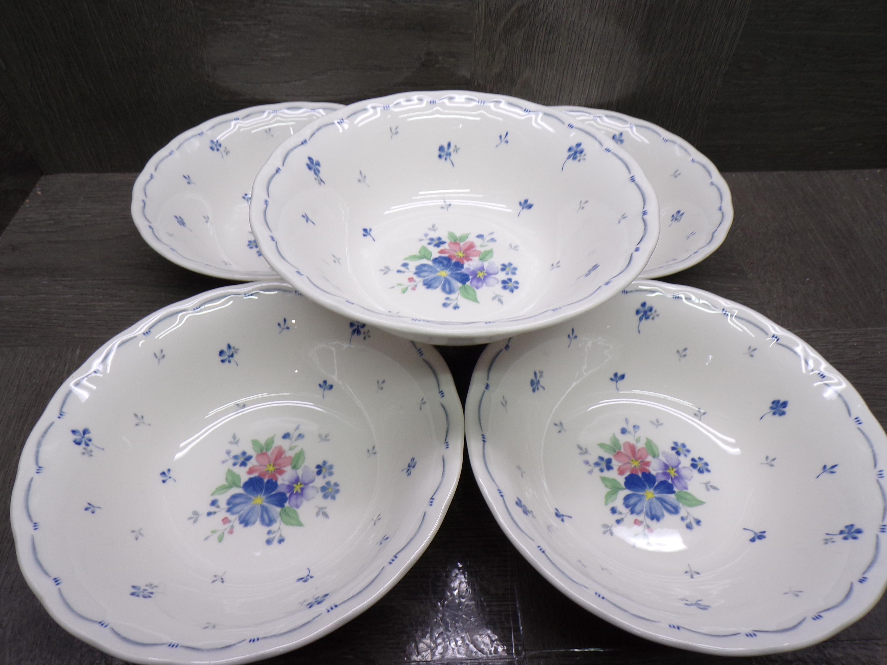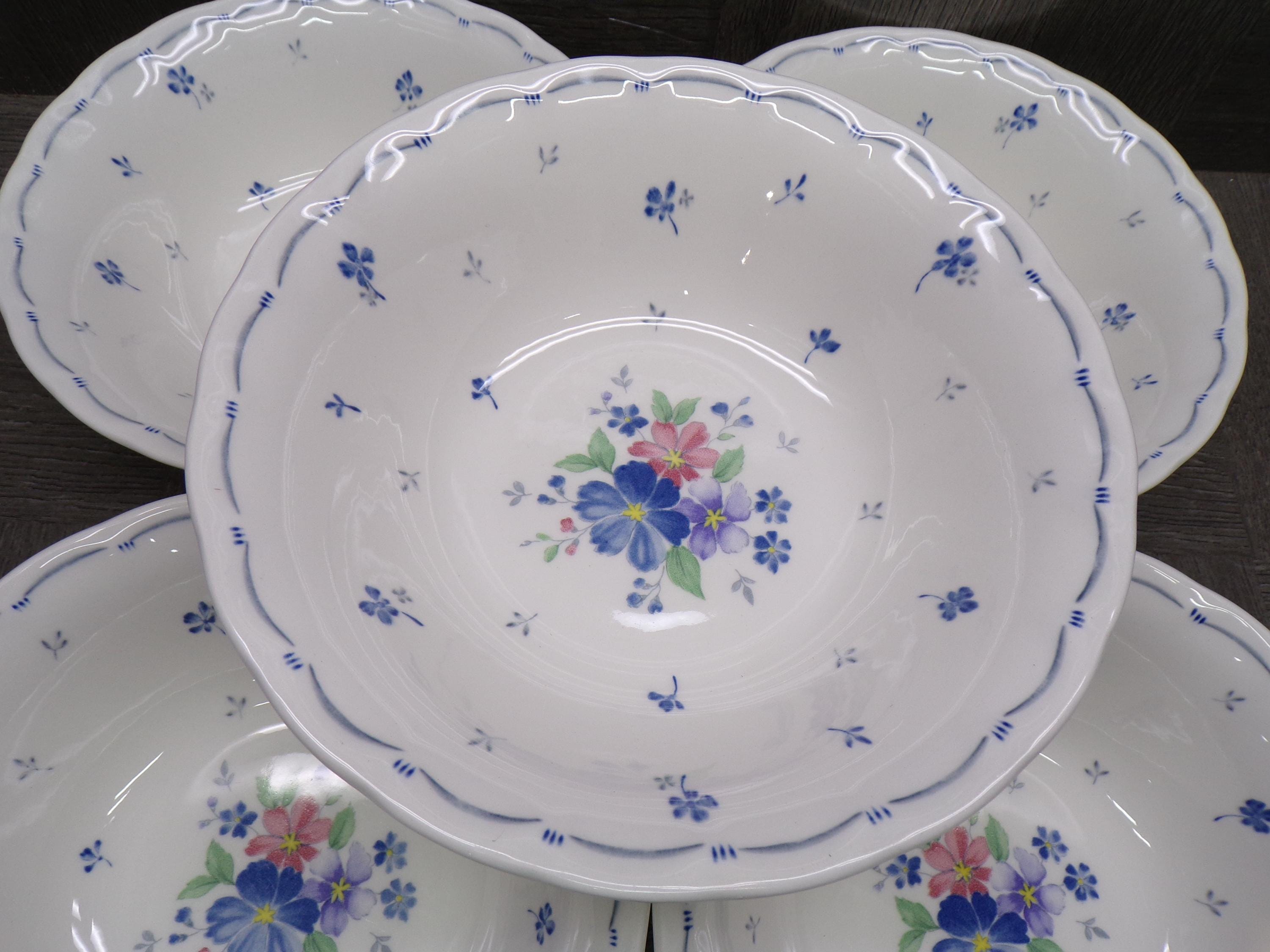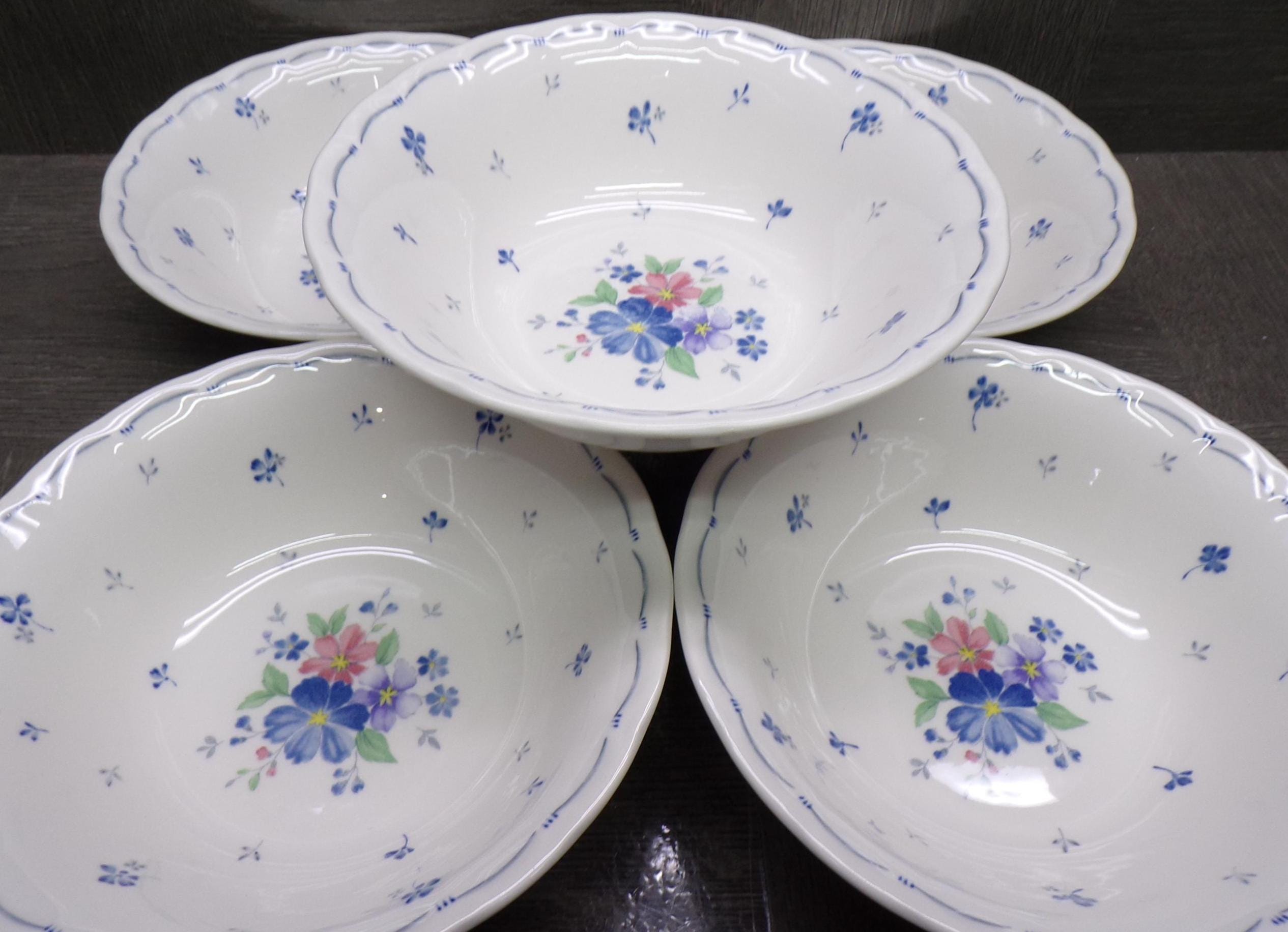 2603 Nikko Blossomtime Blue Peony Swirl 6" Cereal Bowls Set of 5 - Fine Bone China - Great Condition