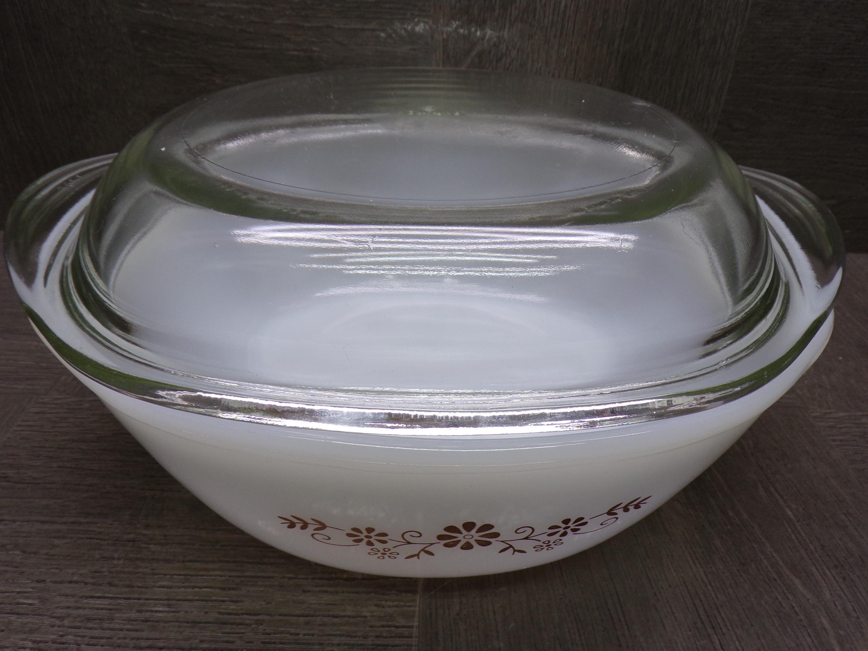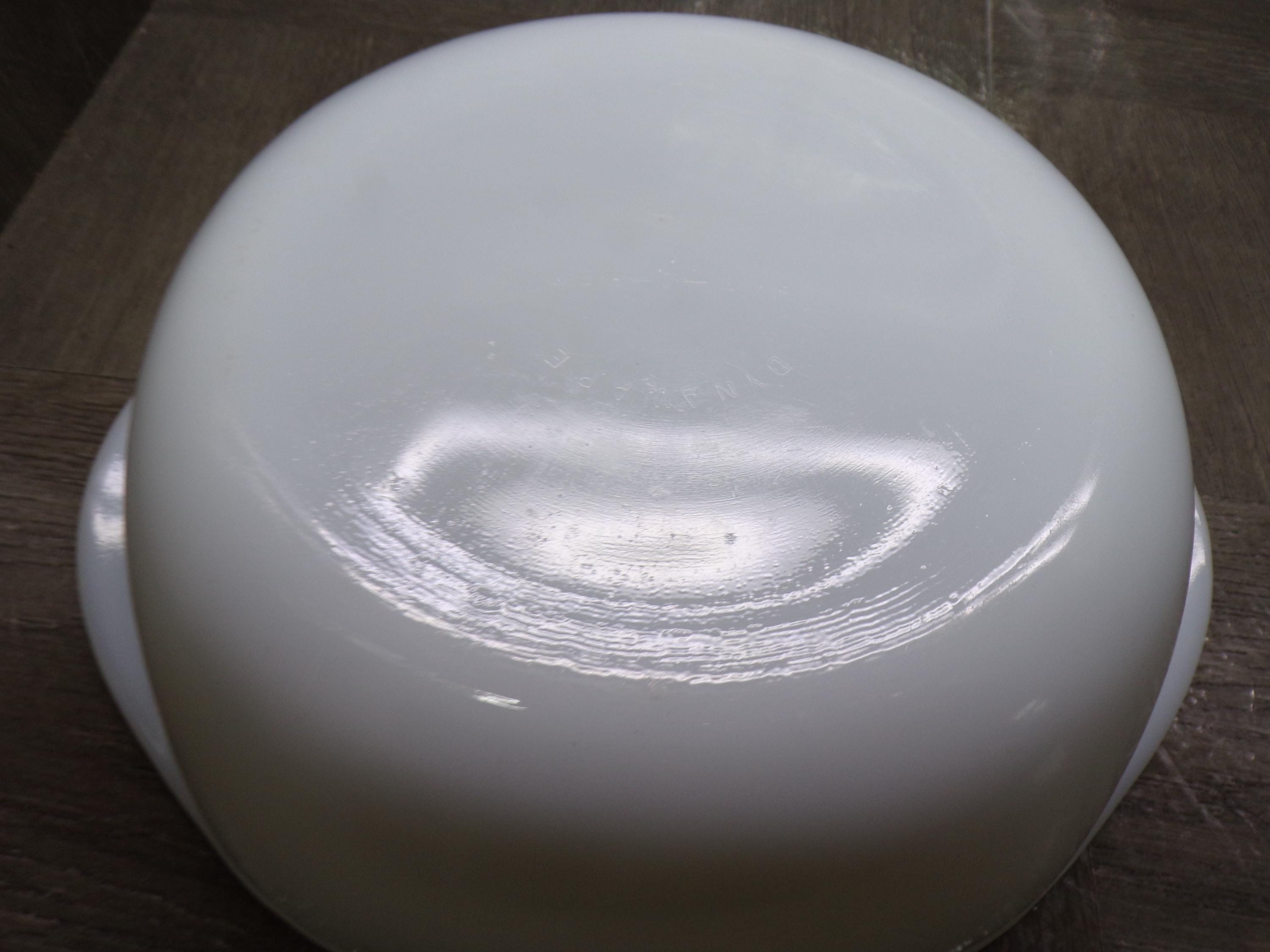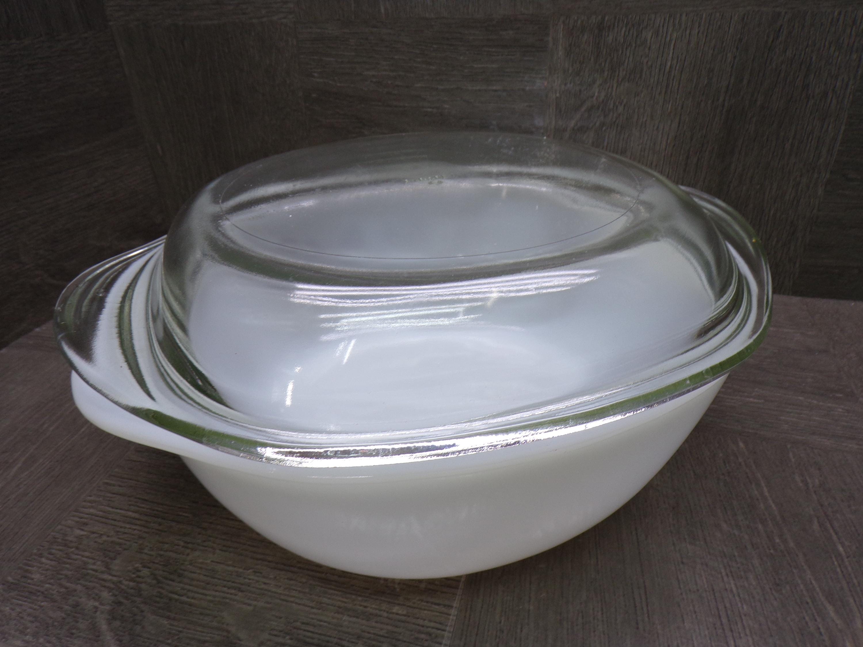 2603 Pyr-O-Rey Dynaware Vintage Milk Glass 8" Casserole Baker 3" Deep w/ Clear Glass Lid - Chip on Inside - Otherwise Great