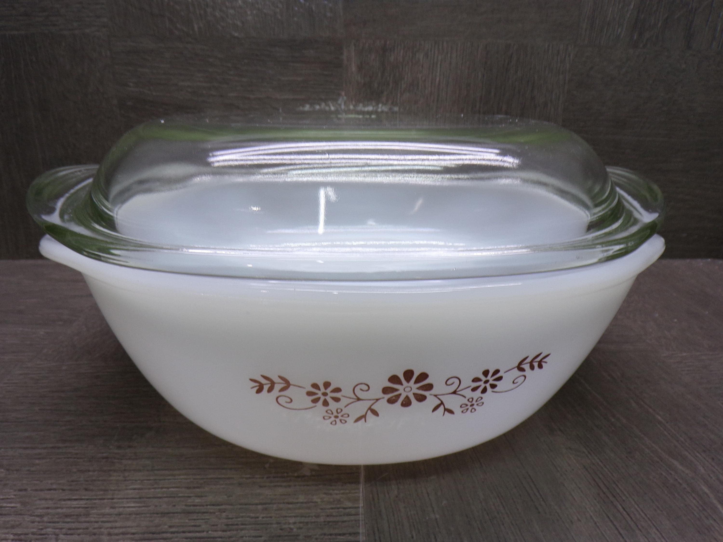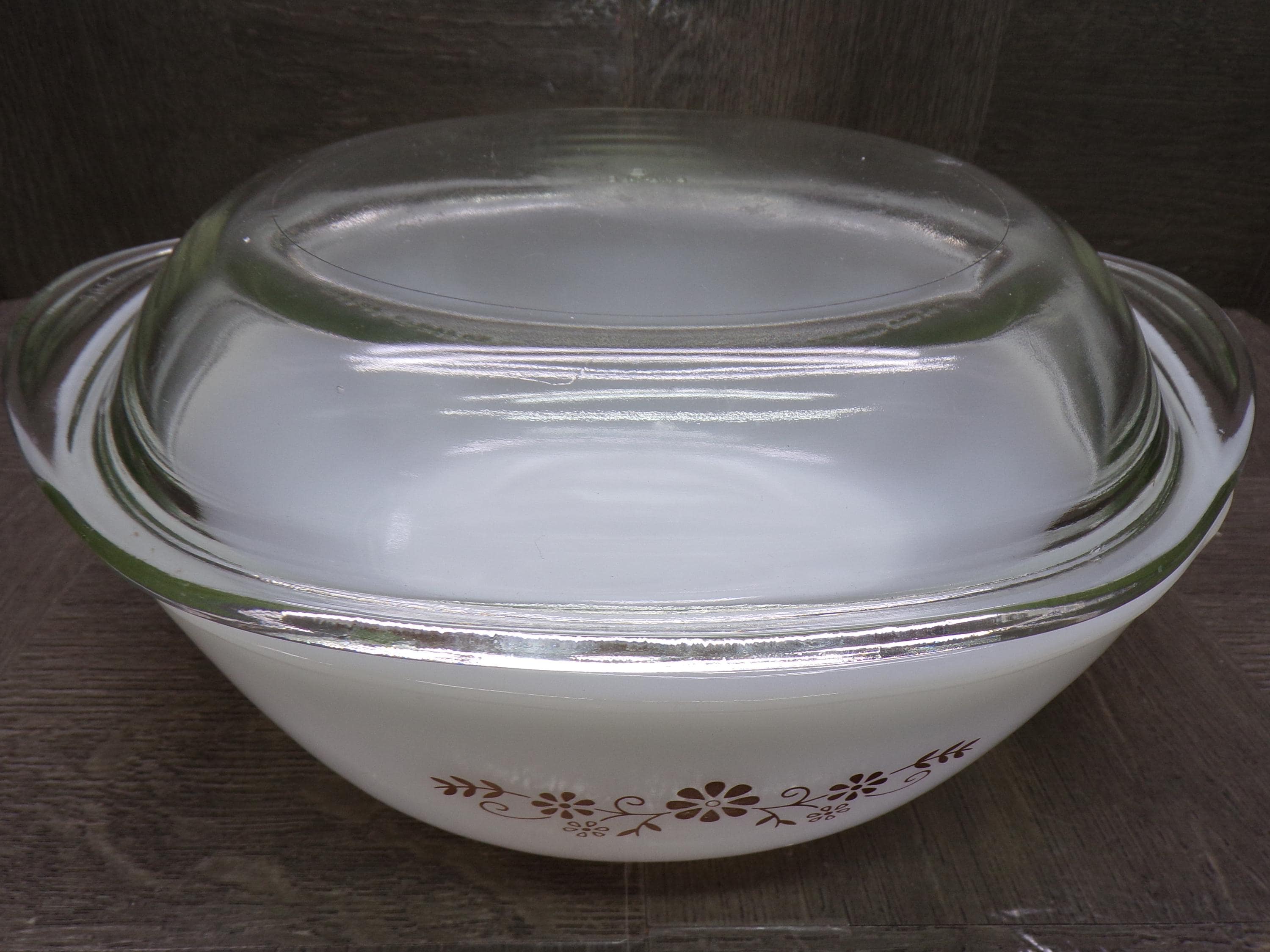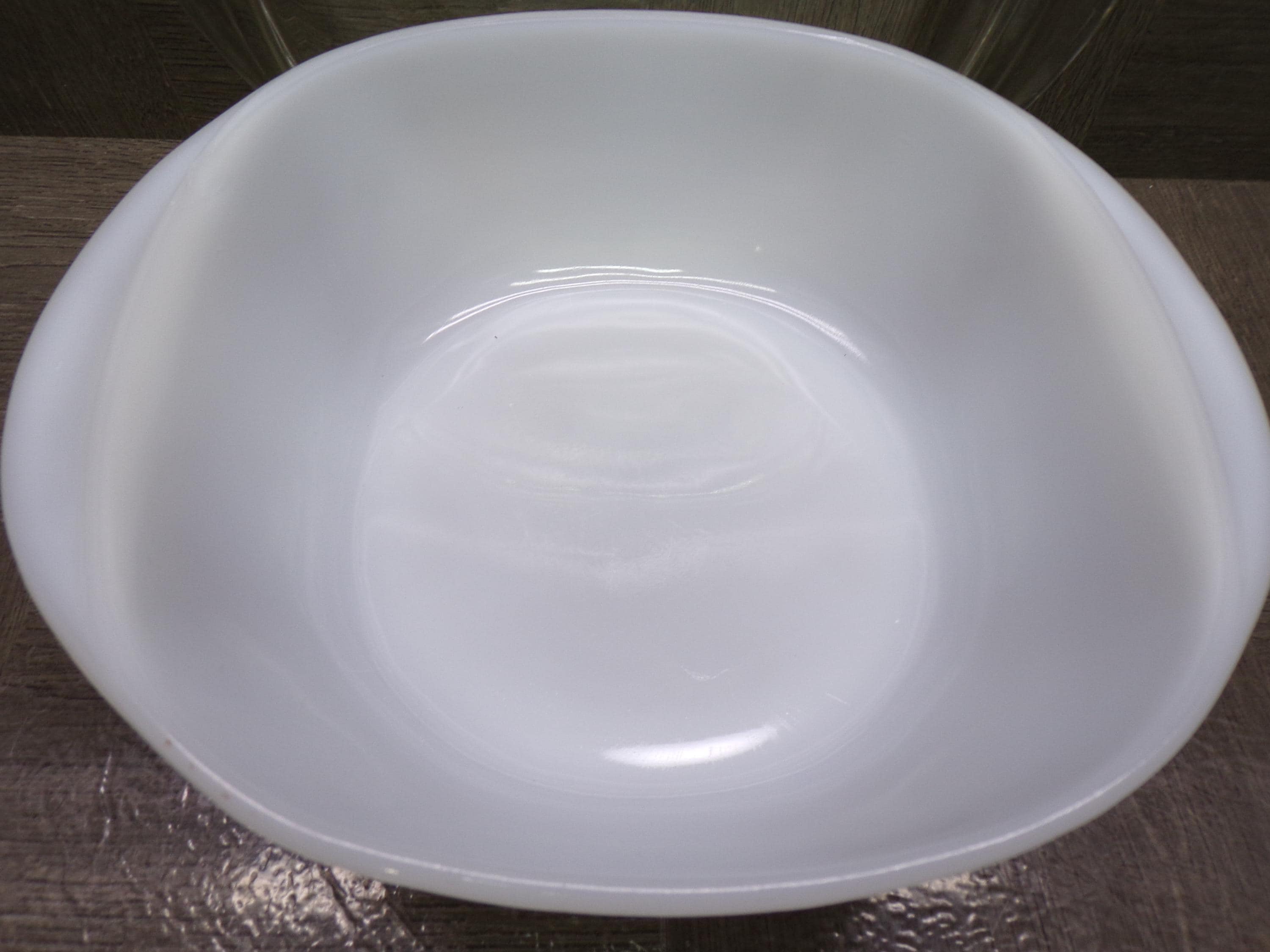 2603 Pyr-O-Rey Dynaware Vintage Milk Glass 8" Casserole Baker 3" Deep w/ Clear Glass Lid - Chip on Inside - Otherwise Great