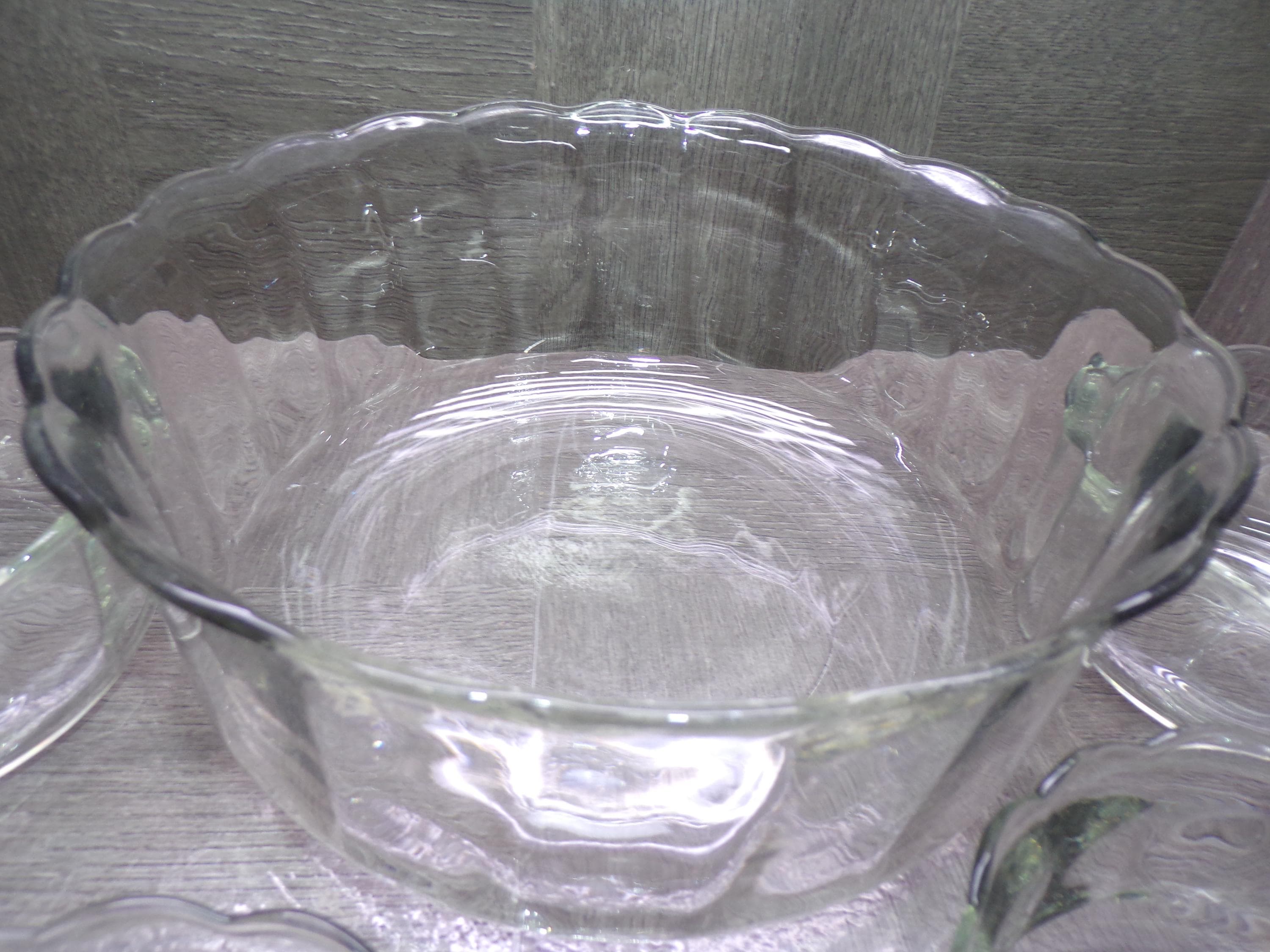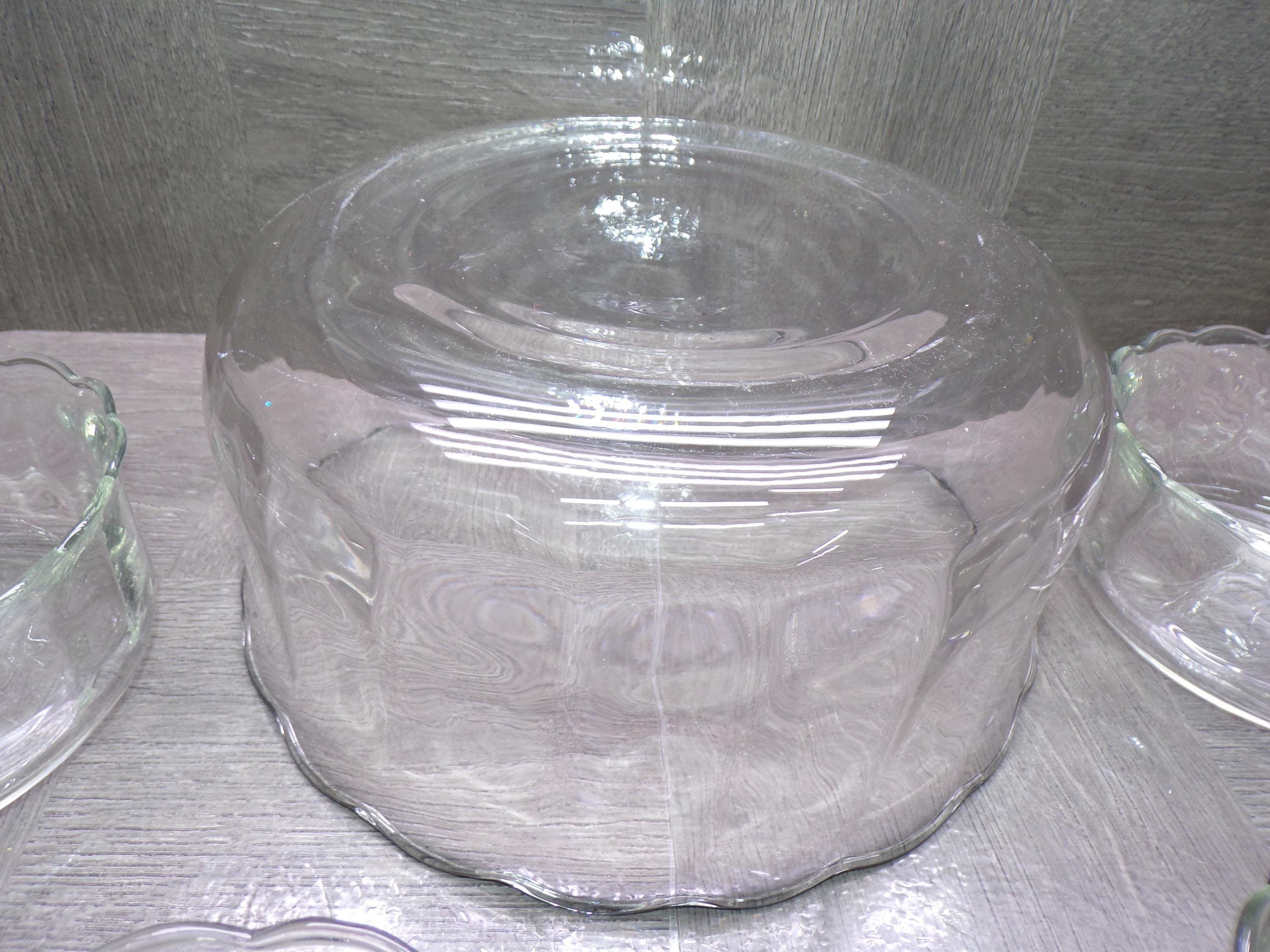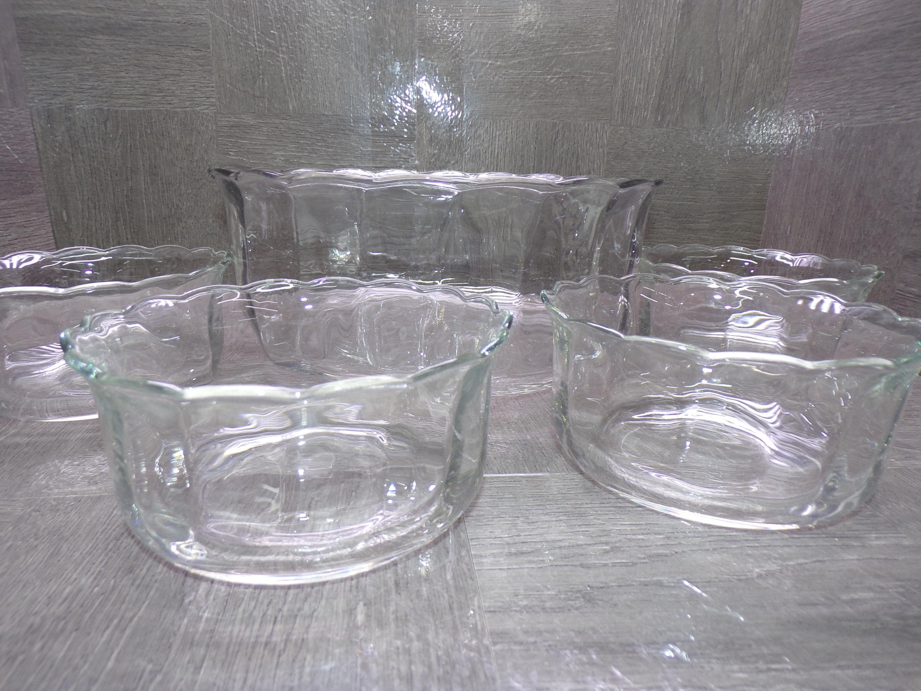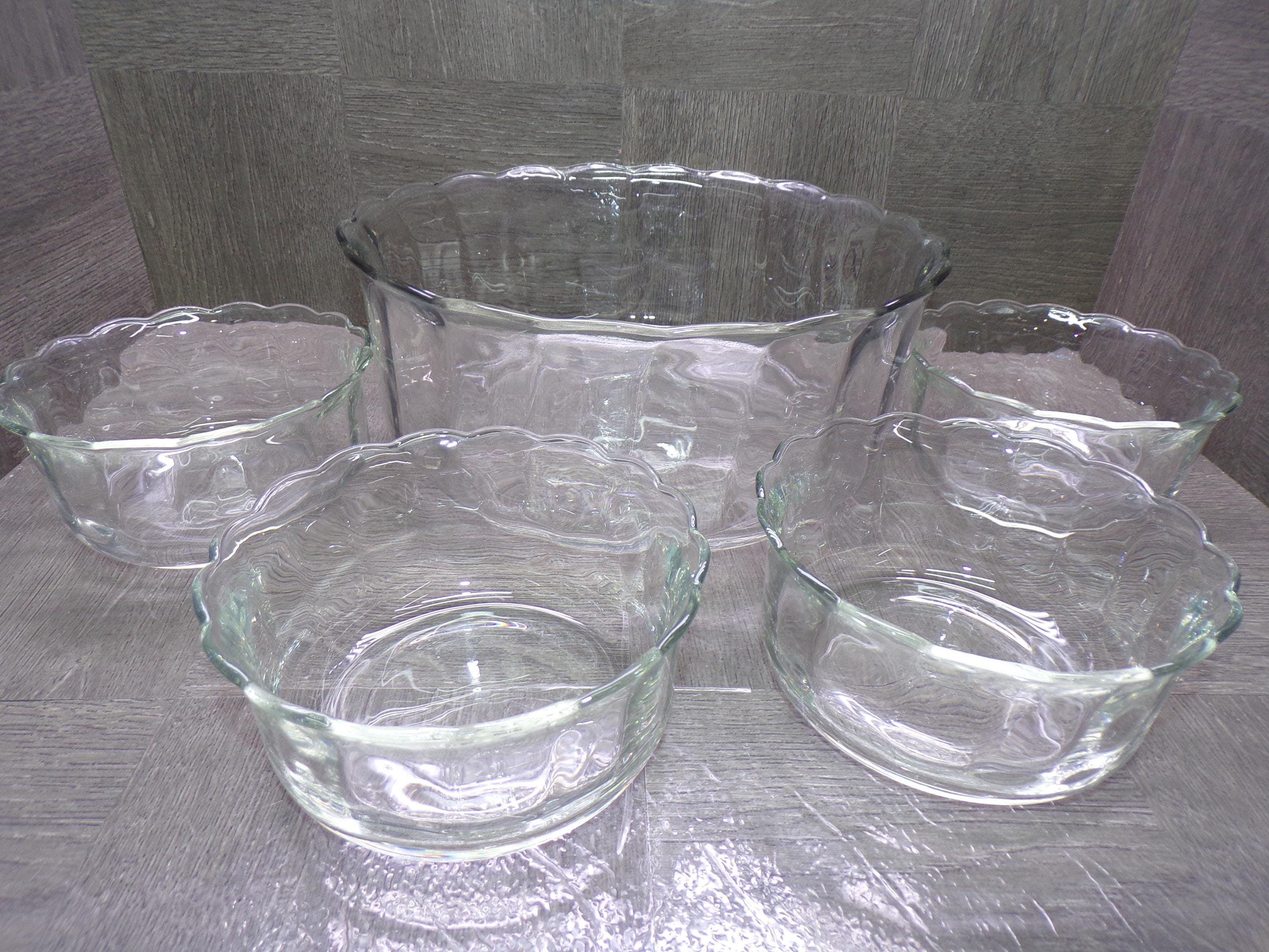 2604 Anchor Hocking Fairfield Clear Paneled Vintage Glass Set of 5 Serving Bowls with Scalloped Edge - One 10" and Four 5.5" - Great Condition