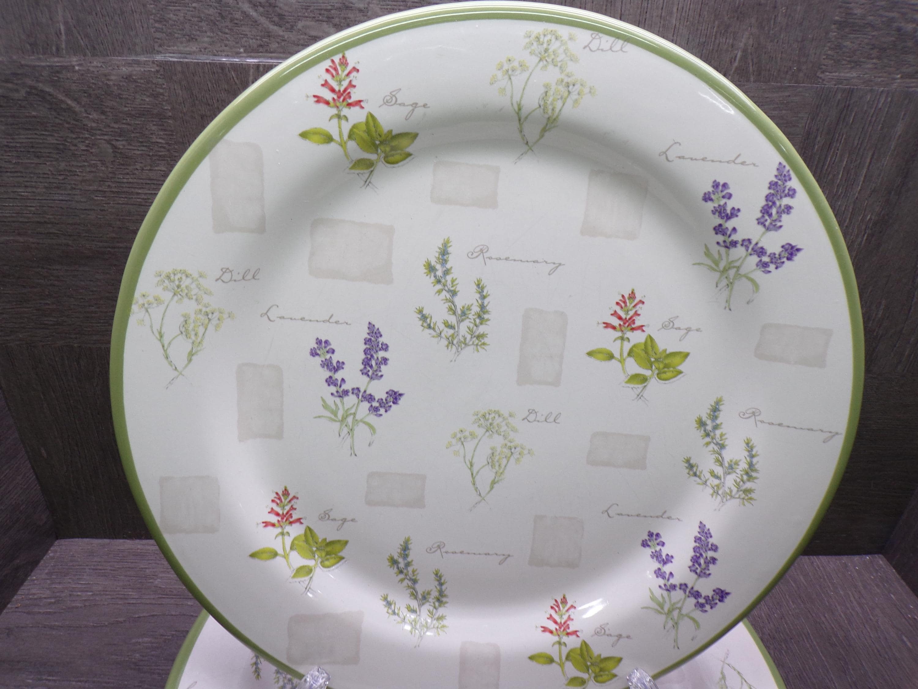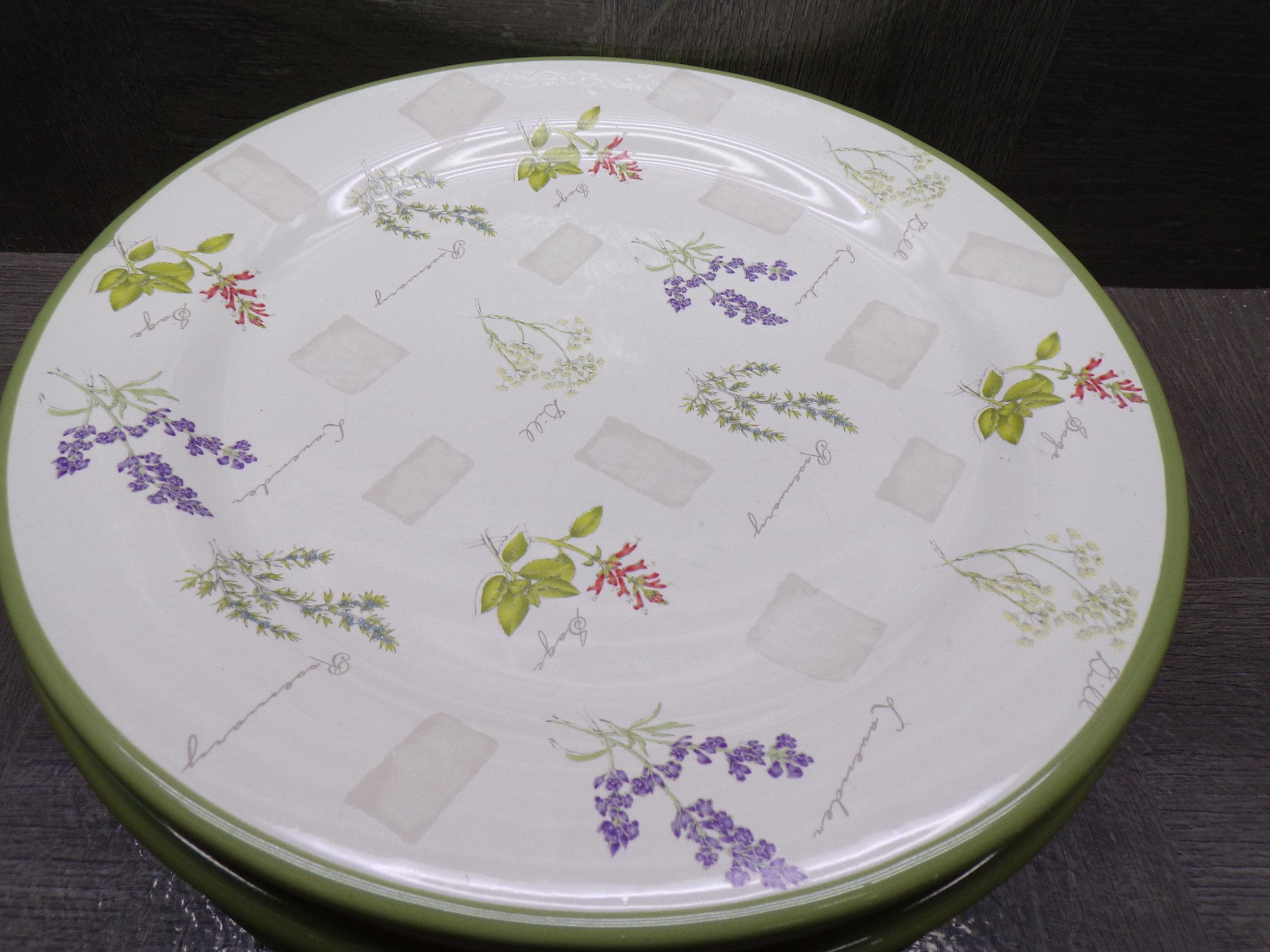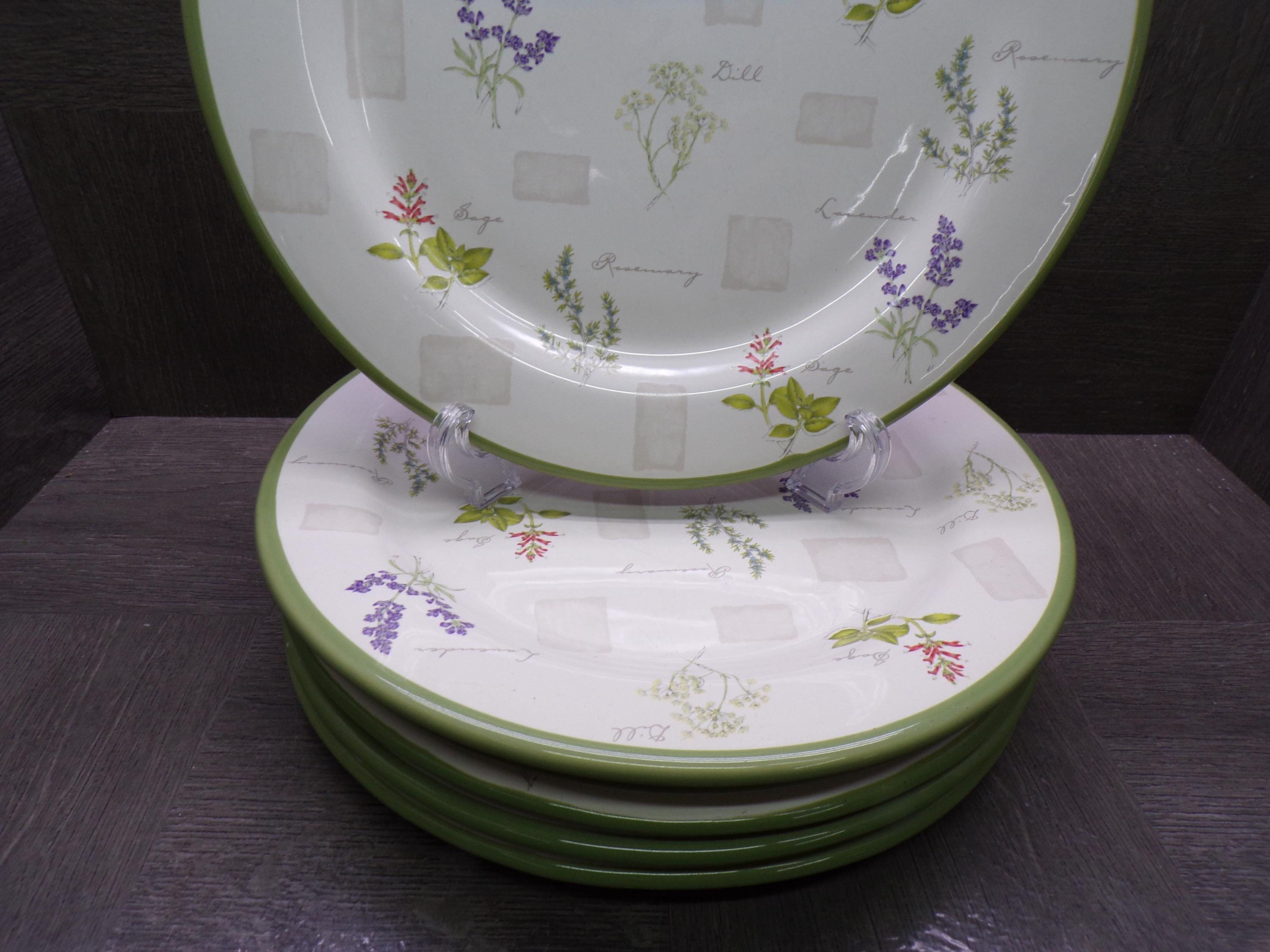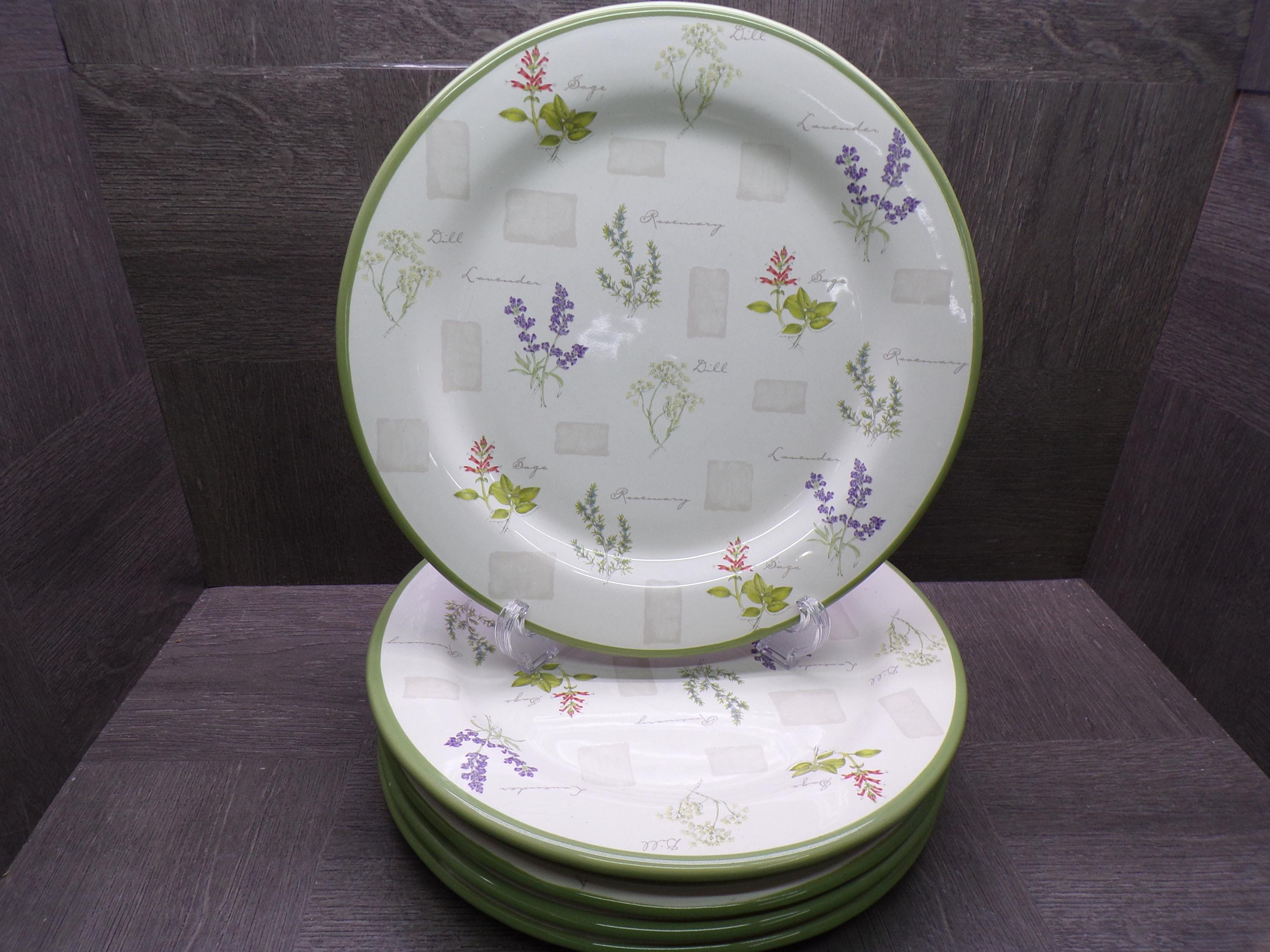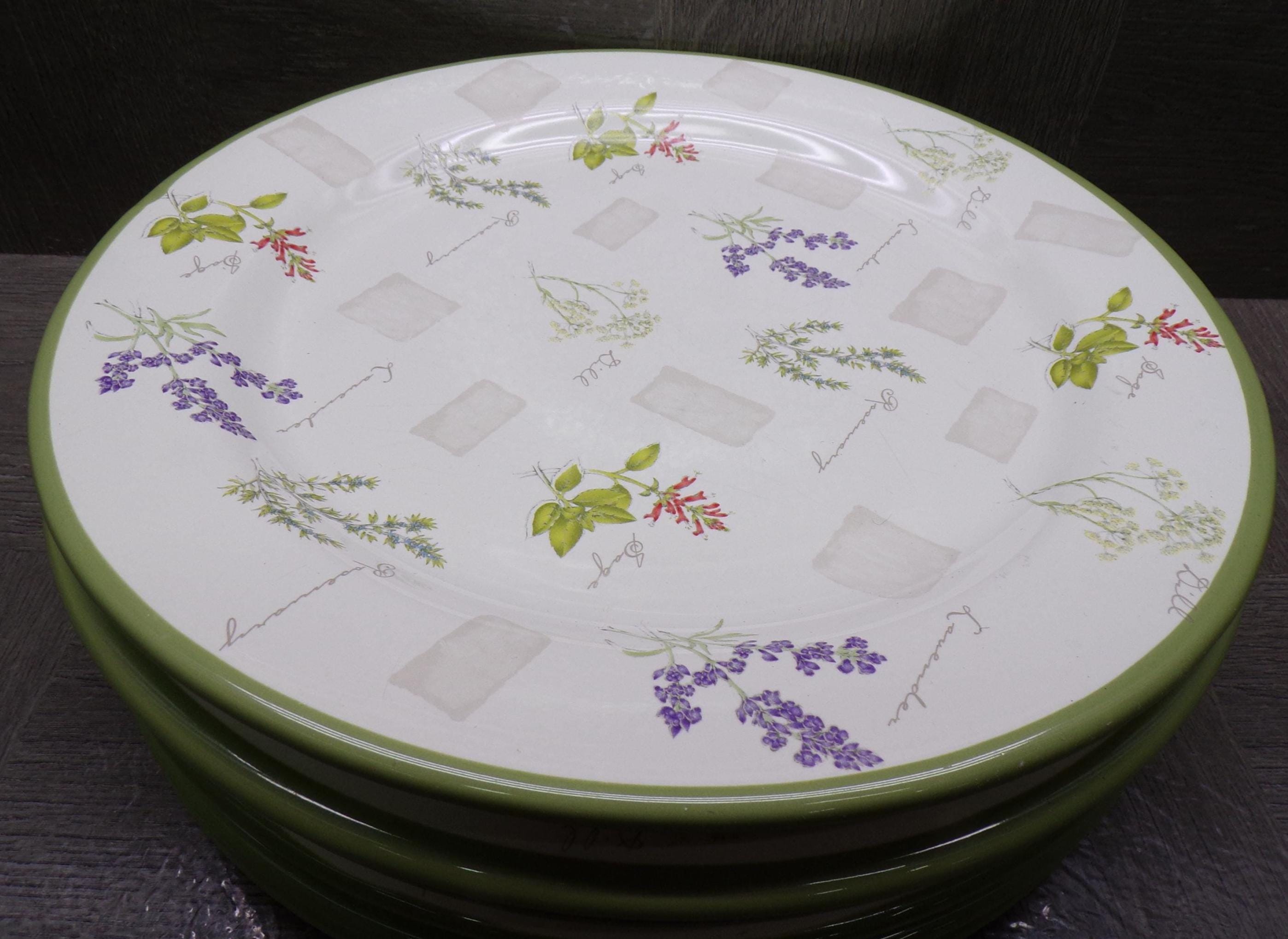 2604 Sonoma Herb Garden 10.75" Stoneware Dinner Plates Set of 6 - Good Condition Light Scratches